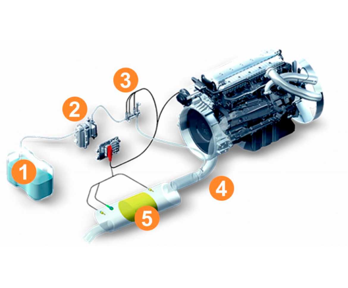 Importante: não é misturado ao diesel. Ele é armazenado em um tanque separado e injetado diretamente no sistema de escapamento.